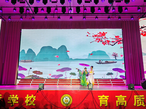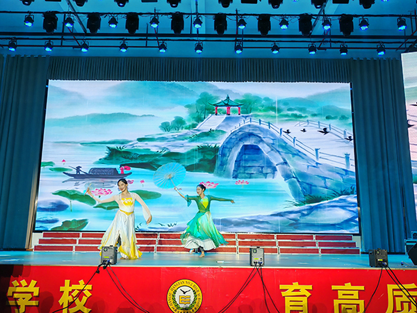 文艺演出以“凤凰花开季 青春展翅时”为主题,全校高三师生观看了演出。演出现场播放了东南大学成贤学院宣传片以及曾经从姜堰二中考入成贤学院并考取知名高校研究生的学长学姐们祝福视频。成贤学院大学生艺术团表演了街舞《Jenny from the block》,充满力量的节奏,热情似火的氛围,轻盈动感的舞步,体现了我校学生饱含热情、自信昂扬、意气风发的精神风貌。东南大学艺术团表演了舞蹈《雨后》,通过白蛇与青蛇的故事,展现了中国传统文化中关于爱情、友情和人性的主题,同时也体现了中国古典舞的独特魅力和艺术价值。选送节目将现代与传统艺术相融合,通过力量与情感的展现,既体现了当代大学生朝气蓬勃的活力,又充分展示了优雅浓郁的校园艺术文化。