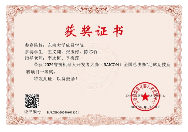 2024.8 我校学生荣获“2024睿抗机器人开发者大赛(RAICOM)全国总决赛”足球竞技竞赛项目一等奖