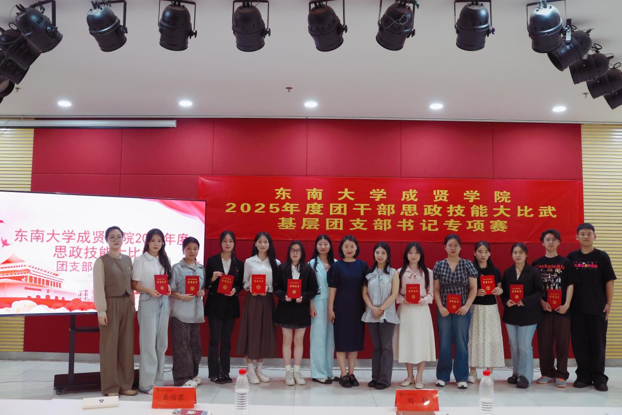 为深入学习贯彻习近平新时代中国特色社会主义思想,贯彻落实党的二十大及党的二十届三中全会精神,进一步聚焦思想引领主责主业,强化基层团组织建设,团结引领学校团员青年坚定不移听党话、跟党走,6月10日晚,校团委在综合楼307报告厅举办东南大学成贤学院团干部思政技能大比武基层团支部书记专项赛。