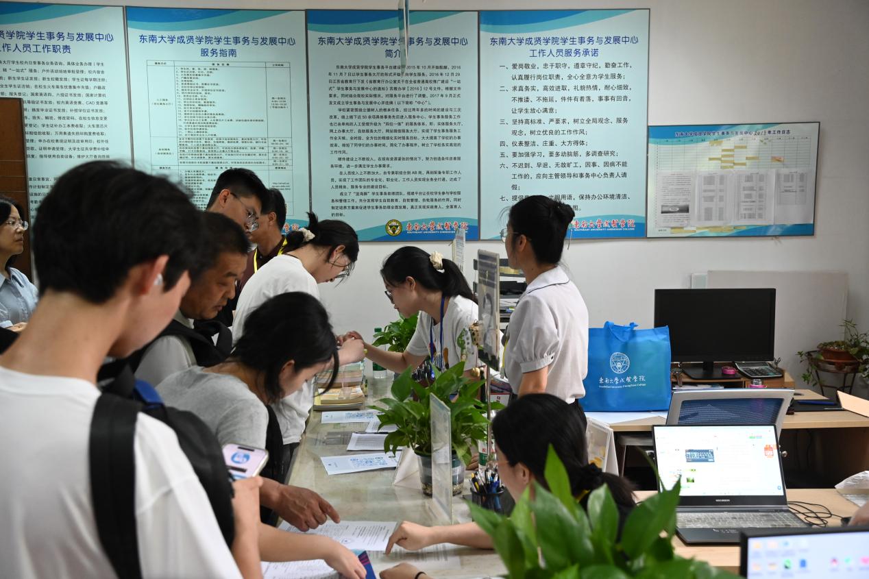 雨后风凉暑气收,庭梧叶叶报初秋。8月31日,东南大学成贤学院迎来了跨越五湖四海的2900名2025级新生。校园内精心营造的迎新氛围、体贴到位的引导标识、一张张热情洋溢的志愿者笑脸,交织成一道明媚的风景,为初入成贤的新生与家长留下了独有的“成贤印象”。
