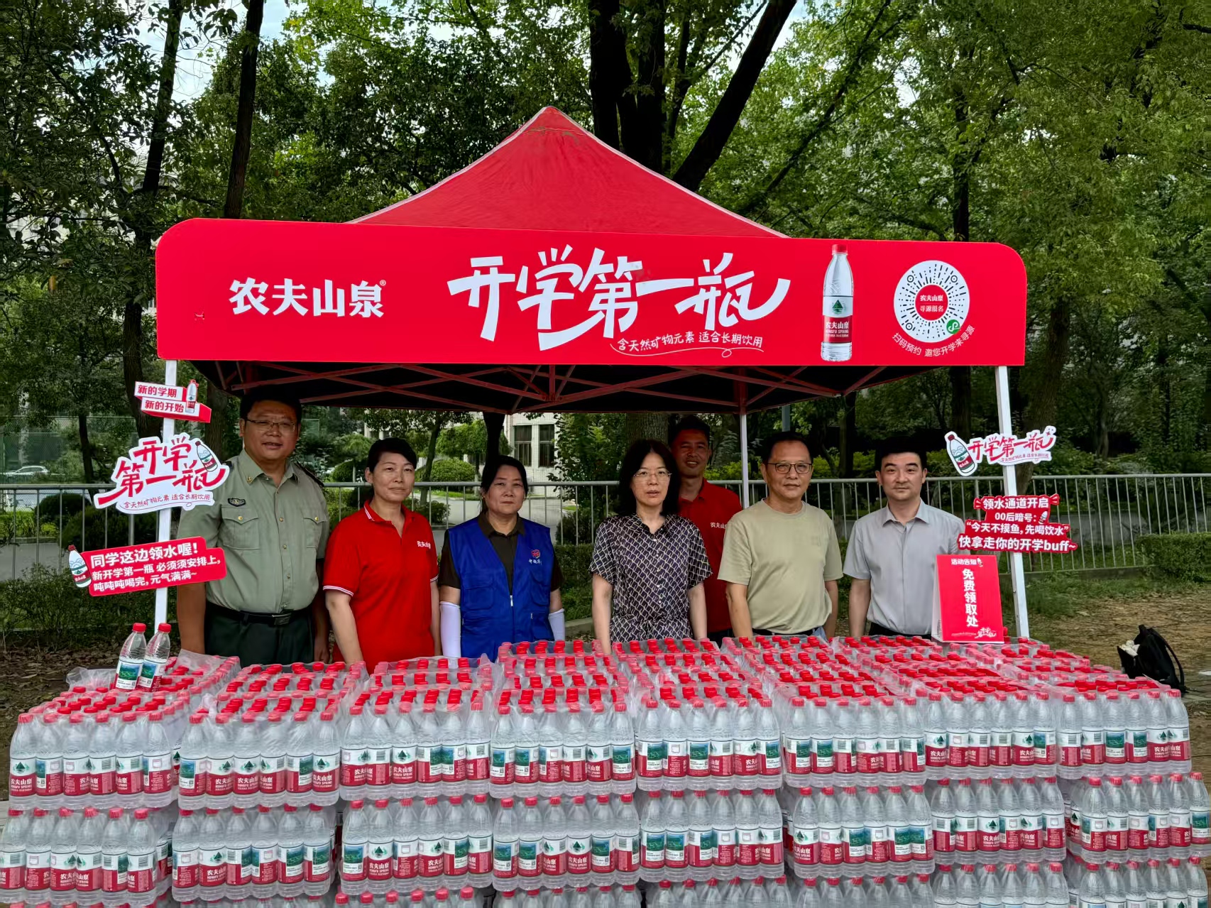 9月12日上午,后勤管理处联合中超超市,组织了“迷彩锤炼报国志 甘泉润泽赤子心”的赠水活动。东南大学成贤学院副院长魏丽玲携后勤管理处全体人员,中超超市和农夫山泉负责人一同参加了现场活动,为参训新生准备了三千瓶矿泉水。