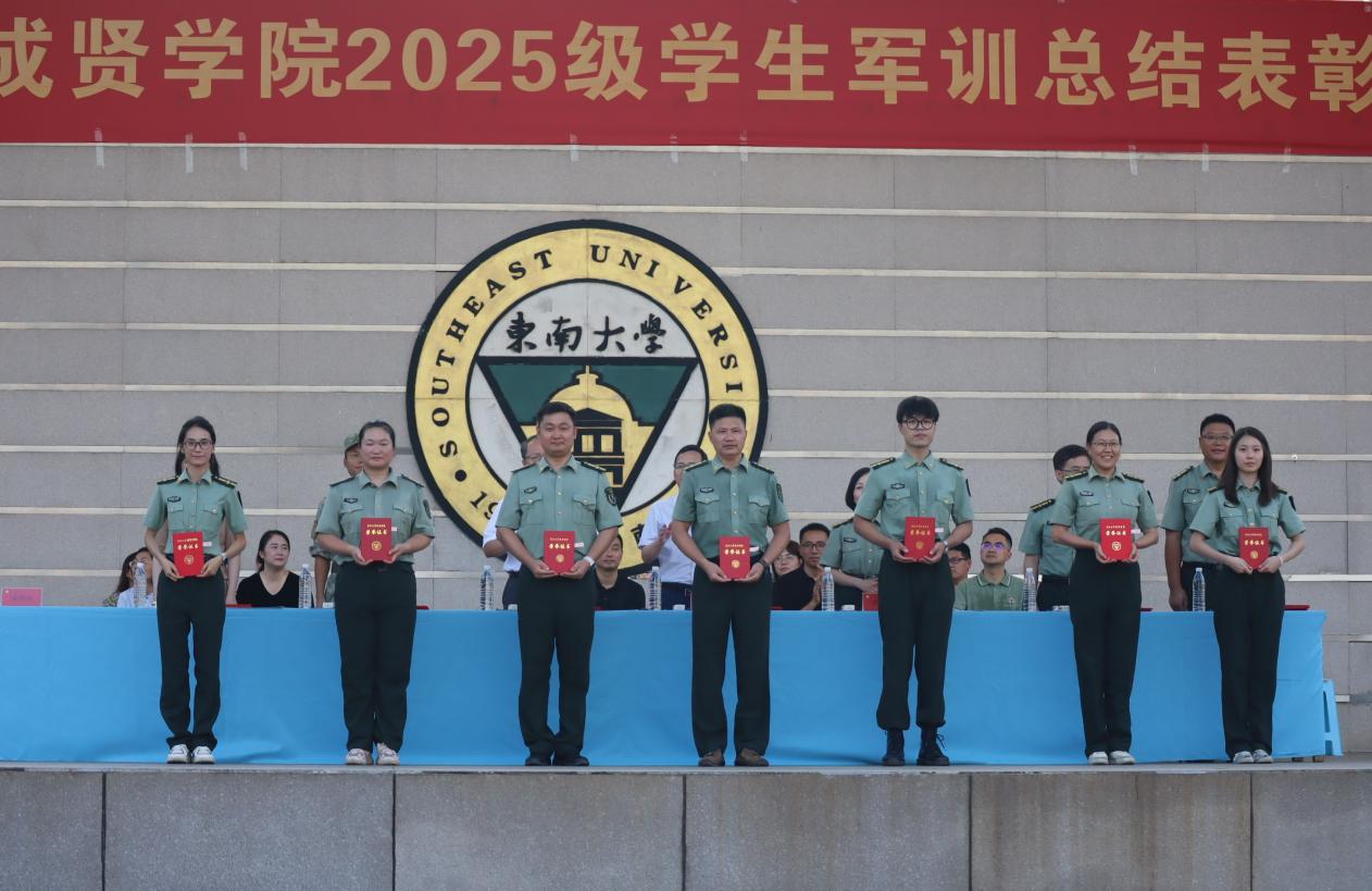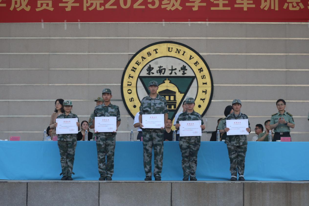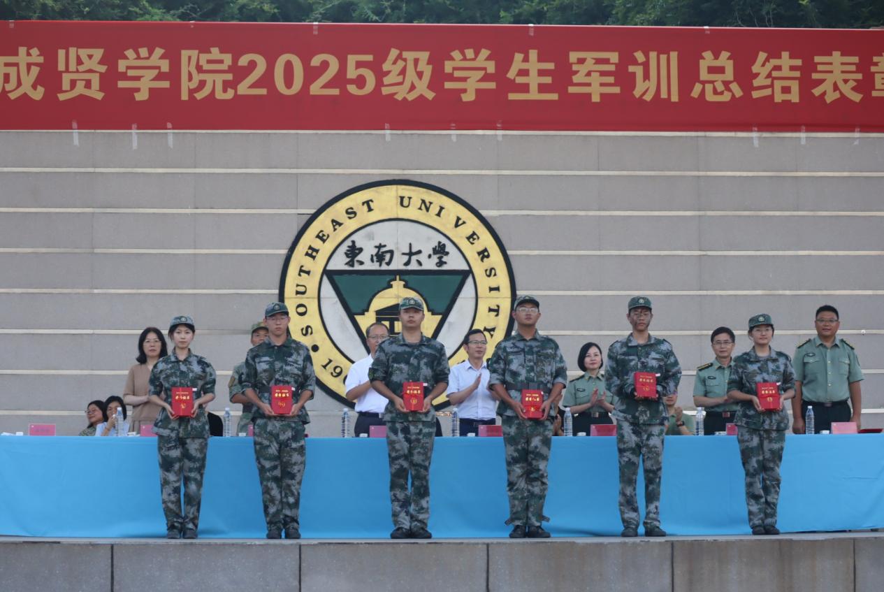 校常务副院长黄学良宣读了《东南大学成贤学院2025级学生军训团嘉奖令》,对军训中涌现的先进集体与个人予以表彰,并希望获奖单位和个人能够戒骄戒躁,谦虚谨慎,再接再厉,在各自的工作和学习岗位上脚踏实地、勤奋钻研、不懈拼搏,力争取得更大的成绩。他同时也希望其他单位与同志以他们为榜样,积极学习、见贤思齐,共同进步。随后,与会部队和学院领导共同为获奖代表颁奖。