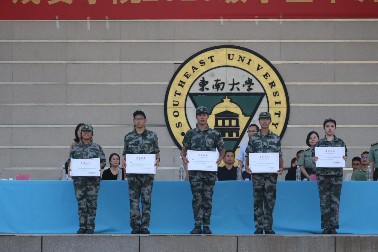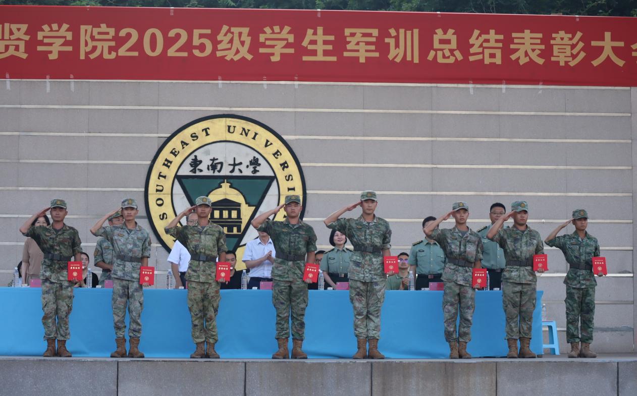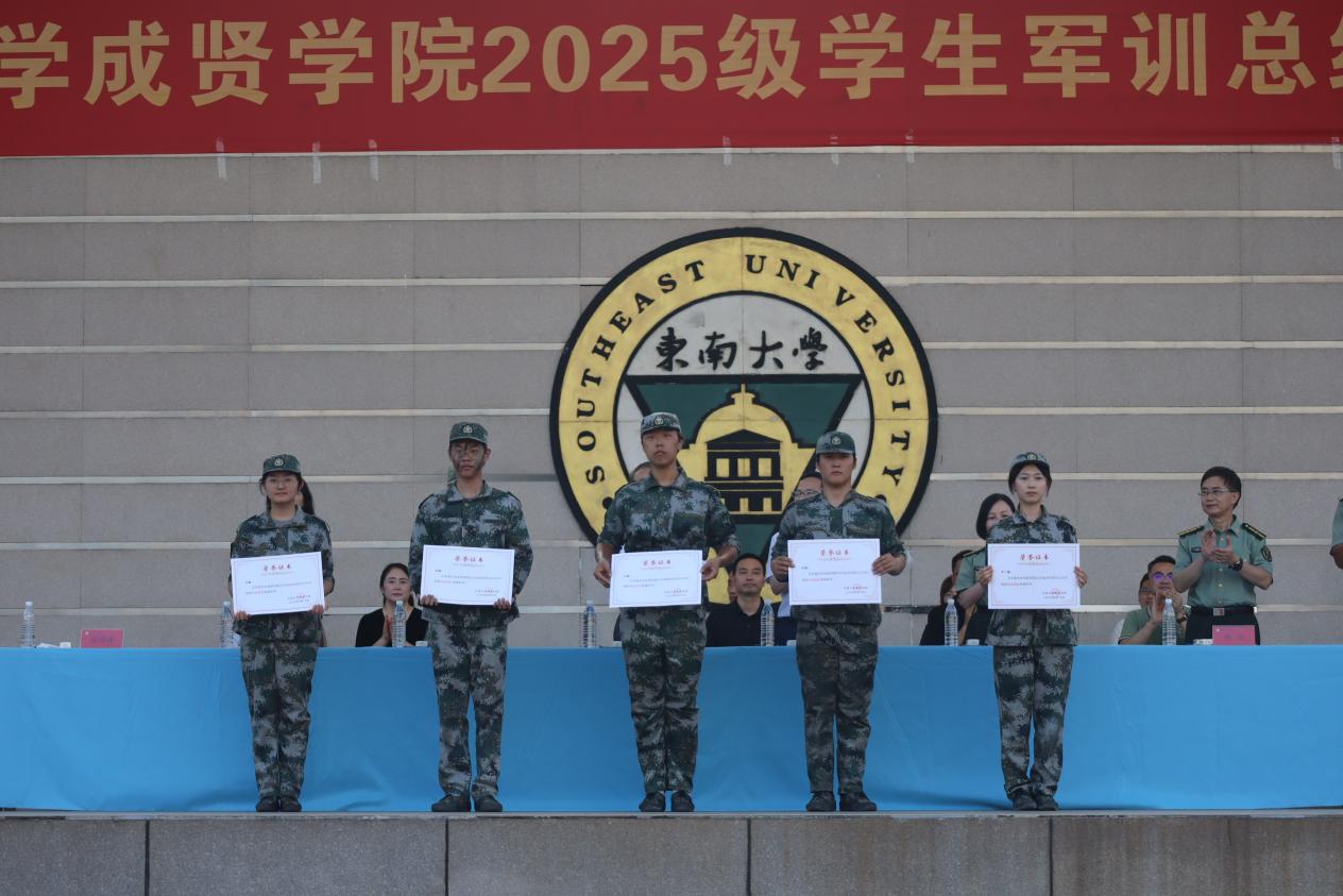 校常务副院长黄学良宣读了《东南大学成贤学院2025级学生军训团嘉奖令》,对军训中涌现的先进集体与个人予以表彰,并希望获奖单位和个人能够戒骄戒躁,谦虚谨慎,再接再厉,在各自的工作和学习岗位上脚踏实地、勤奋钻研、不懈拼搏,力争取得更大的成绩。他同时也希望其他单位与同志以他们为榜样,积极学习、见贤思齐,共同进步。随后,与会部队和学院领导共同为获奖代表颁奖。