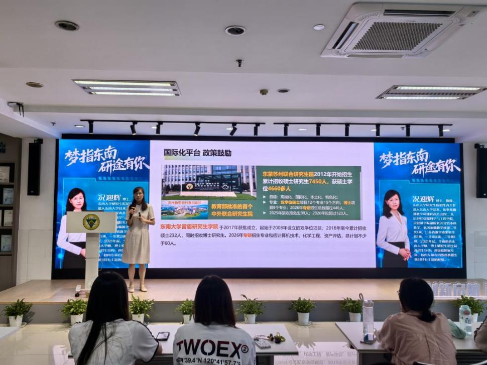 作为东南大学研究生招生领域的权威专家,况迎辉教授结合多年的招生和教学管理经验,为在场学生带来一场内容扎实、针对性强的备考指南,整场讲座紧密围绕我校学生实际需求展开,有效解决了学生在院校选择、政策理解、流程准备方面的关键问题。
