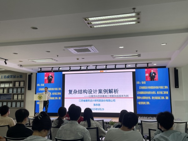 9月29日,由土木与交通工程学院举办的“复杂结构设计案例解析”专题讲座在我校求真·求美·创新工坊成功举办。本次讲座邀请了江苏省建筑设计研究院股份有限公司张永胜副总工程师作为主讲嘉宾,土木与交通工程学院各专业200余名师生参加了本次讲座。