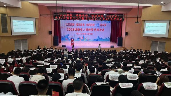 为帮助新生适应环境、做好学业规划,10月10日下午,电子与计算机工程学院在综合楼报告厅开展“以芯迎新,编译青春,链接梦想,e启未来”2025级新生入学教育系列活动。学院执行院长王晓蔚、党总支副书记苏力、副院长朱林,综合办主任、分团委书记、新生辅导员,及全体新生共400多人参加了活动。