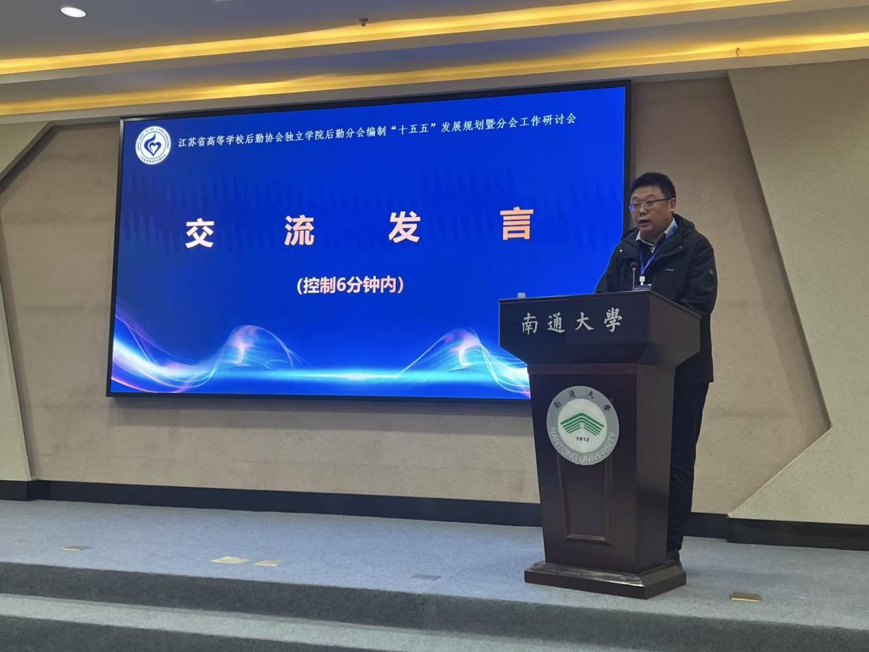 王卫东代表南通大学及南通大学杏林学院对与会嘉宾表示热烈欢迎,他指出,新时期独立学院后勤服务正面临需求升级与模式变革的双重机遇,期望通过本次研讨实现经验共享、智慧聚合,为“十五五”规划注入新思路,为江苏独立学院后勤事业发展凝聚合力。