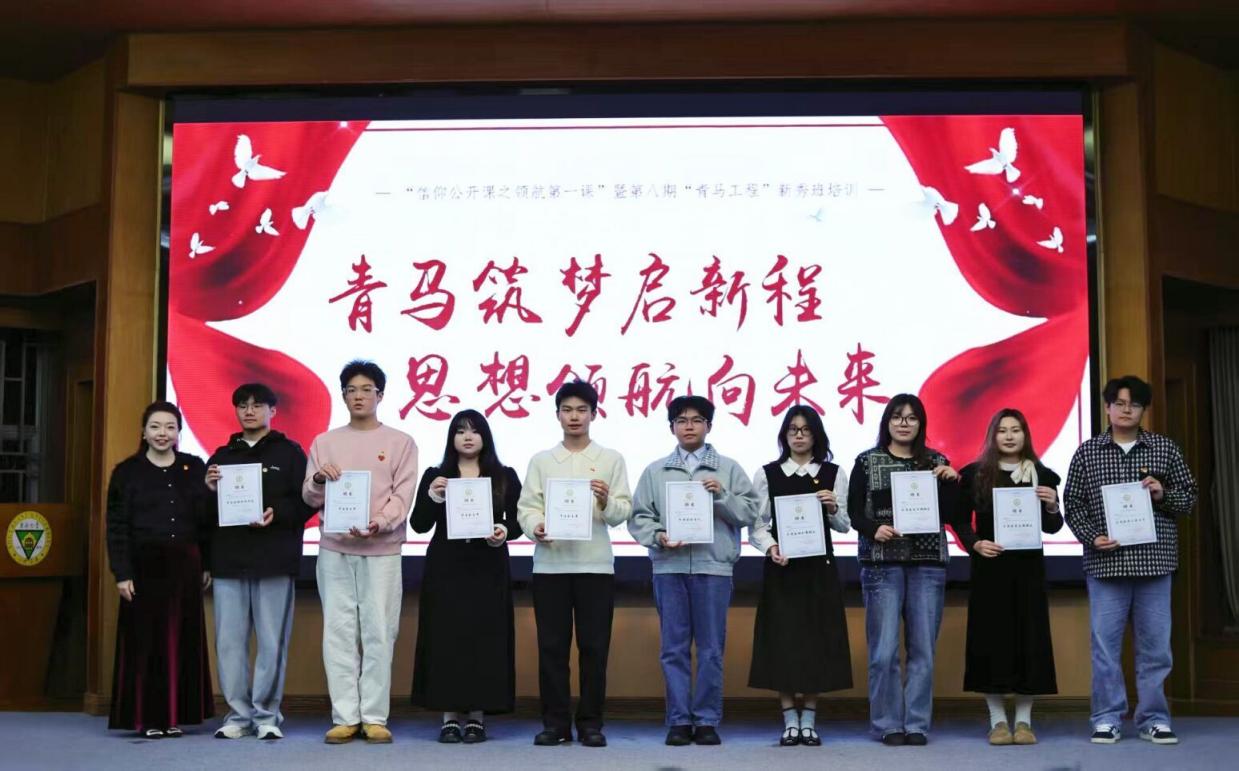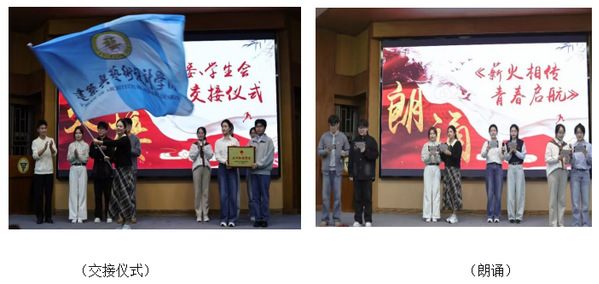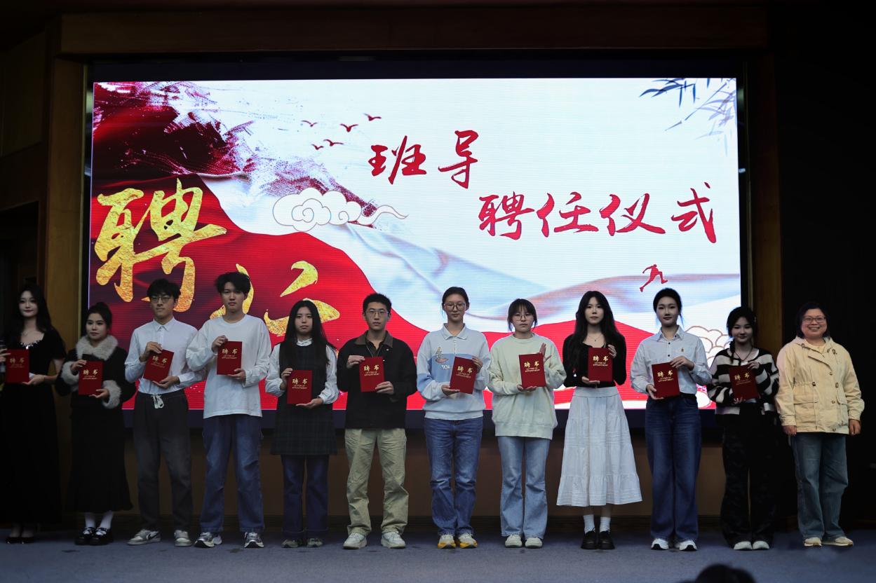 随后进行的分团委学生会换届仪式上,分团委书记江晶老师为上一届学生干部颁发荣誉证书,并宣读新一届学生会干部任命名单。上一届分团委副书记张正和执行主席张豪杰分别上台将象征着服务同学、奉献校园的“五四红旗团委"牌匾郑重交予新一届学生干部。新一届学生干部通过集体朗诵《薪火相传,青春启航》,承诺将秉持初心、务实笃行,为构建更加团结向上的校园氛围贡献青春力量。