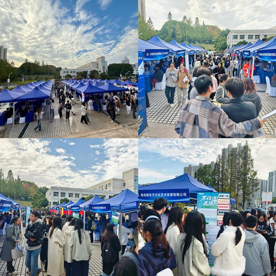 深秋暖阳,逐梦笃行。为积极响应国家就业优先战略及相关就业促进活动部署,紧扣高校毕业生高质量就业工作要求,搭建精准高效的校企对接平台,促进用人单位与毕业生深度互动,为成贤经管学院学子实现更高质量就业保驾护航。11月10日下午,由经济管理学院主办,校团委协办的”卓越启航职通未来”经济管理学院2026届毕业生专场招聘会在电子电工大楼前广场举办。本次招聘会共邀请44家优质企业参与,其中包含10家校友企业和校企合作单位,累计提供就业岗位1128个。