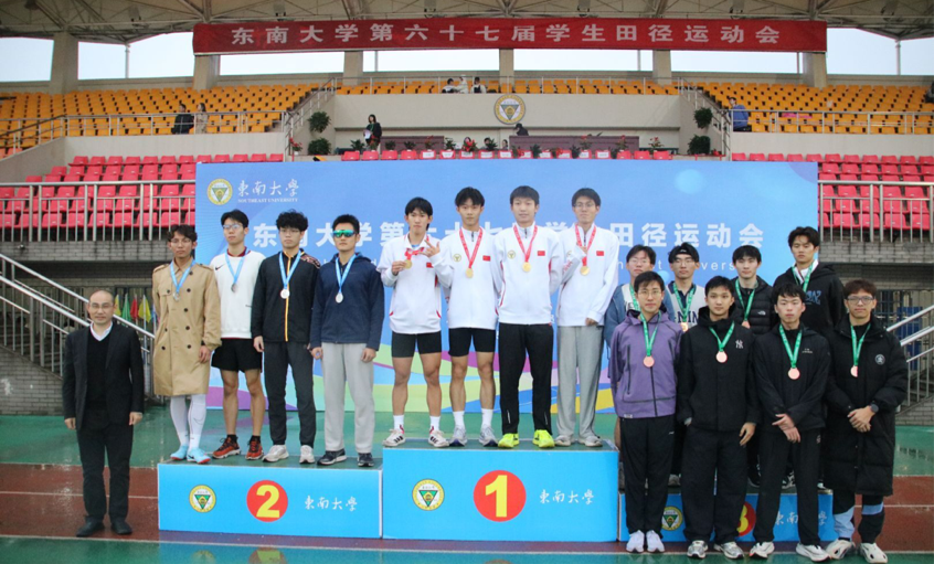 我院田径代表队由体育教研室主任王青禾任领队,刘龙柱、刘晓川和徐小虎老师任教练员。此次东南大学运动会上,我院运动健儿们顽强拼搏、团结协作,一举夺得了男女团体总分、男子团体总分和女子团体总分三项第一名的最佳成绩,其中男子4*100米接力项目和男子10*100米接力项目打破东南大学校运会记录。在此次东南大学运动会上我院代表队共获得9枚金牌、6枚银牌、7枚铜牌,并包揽男子4×100m、女子4×100m、男子10×100m、女子10×100m团体项冠军。在个人单项上,程铮、姜海天、陈铮、韩恩萍等多名同学更是斩获多项冠军和取得前八名的好成绩。