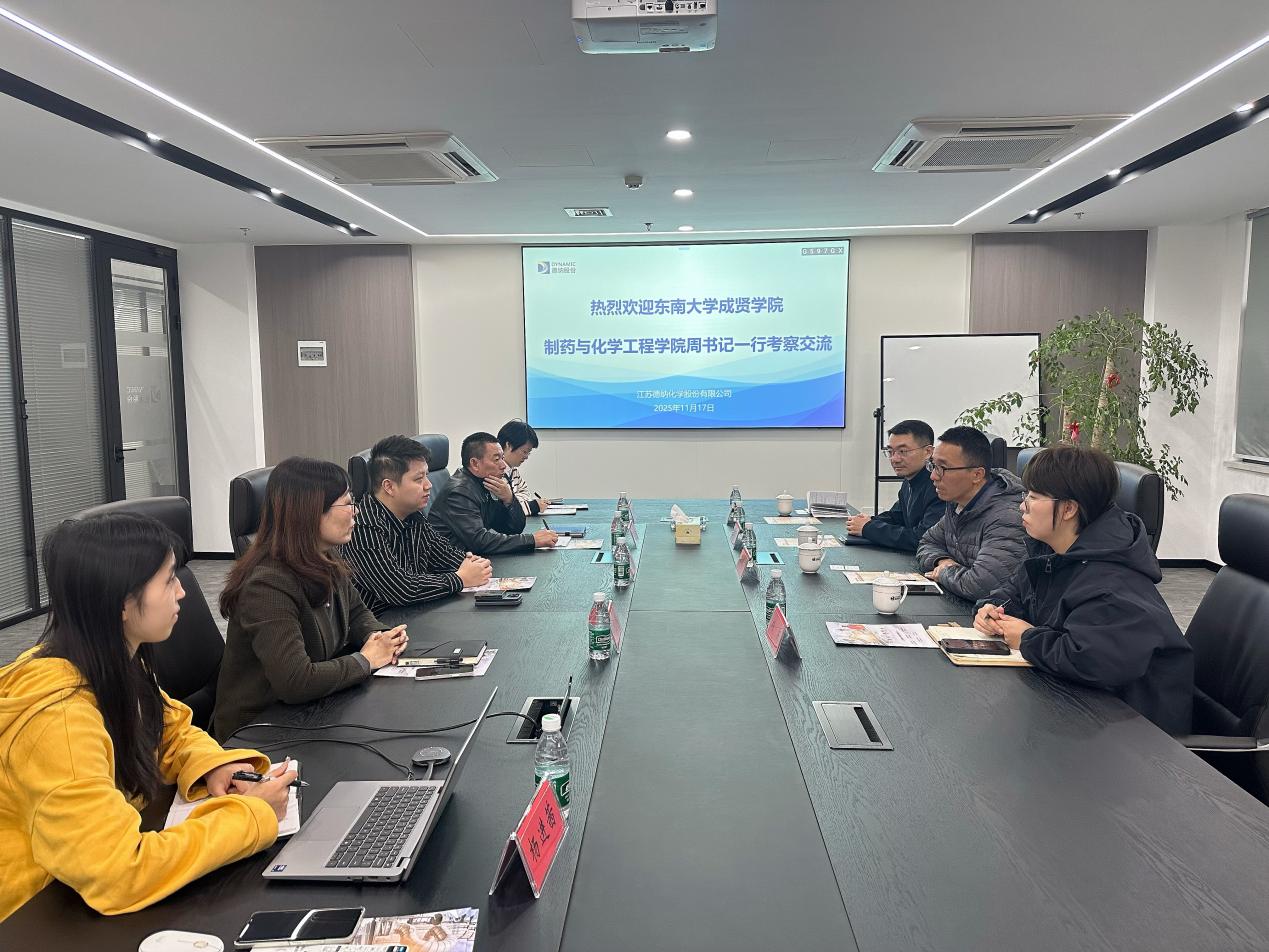 11月17日,周继荣书记、陆瞿亮主任、刘庆主任等一行前往江苏德纳化学股份有限公司考察交流。总经理助理秦翊涵、人力行政中心总监经艳燕热情接待并详细介绍公司的发展历程、战略布局、核心技术以及未来的人才发展规划。周继荣书记向企业领导介绍了东南大学成贤学院的办学历史、育人理念以及制药与化学工程学院的专业特色、学科建设,重点阐述了学院致力于培养应用型人才的定位。双方希望能以此次交流为起点,在学生实习实践、毕业生招聘、产学研项目合作等多个维度展开深度合作,实现资源共享、优势互补、共赢发展。