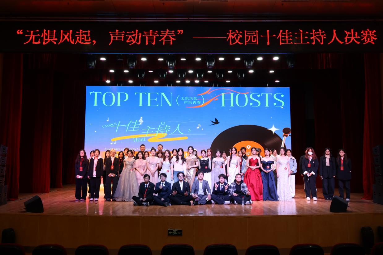 为进一步丰富校园文化内涵,12月3日晚,由校学生会文艺部、校团委宣传部联合主办的“无惧风起,声动青春”2025年校园十佳主持人决赛在综合楼报告厅圆满落幕。本次比赛邀请了东南大学医学院团委副书记兼辅导员周武、校团委老师、学生副书记、2024年十佳主持人大赛特等奖获得者担任评委,部分辅导员及各院学生代表共600多人观看了比赛。